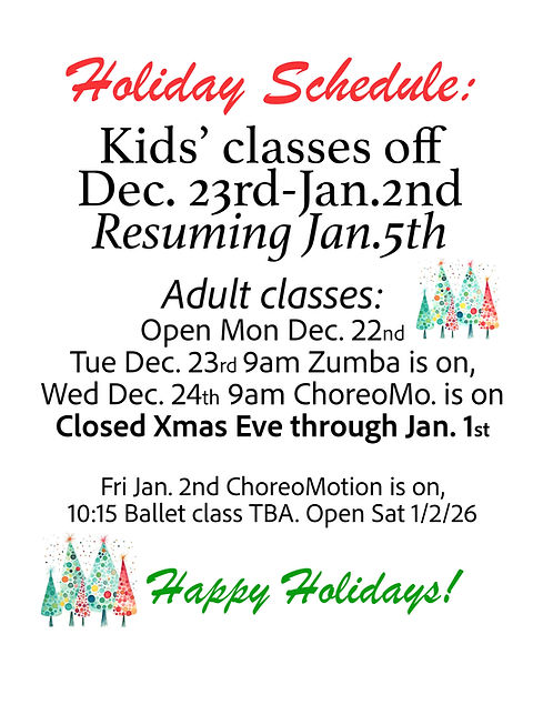 (Jazz, Tap, Ballet, Contemporary, African, Latin, ChoreoMotion, Zumba...)
